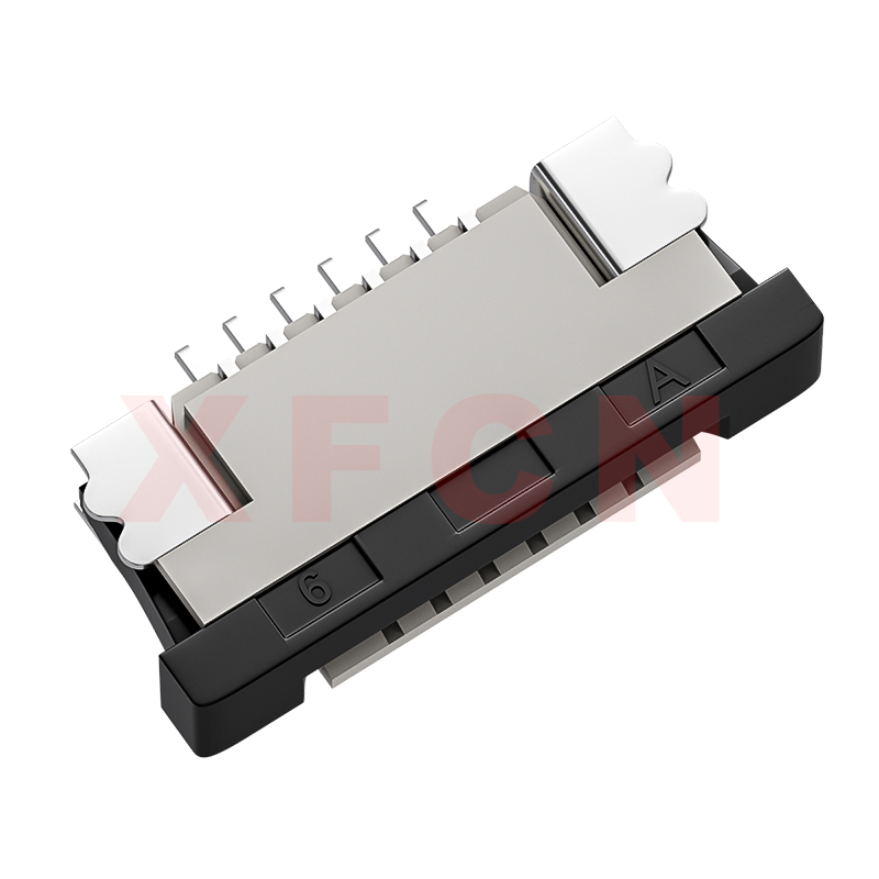 描述:FPC-1.0mm间距,卧贴拉拔式下接触,06位,高度2.5mm,