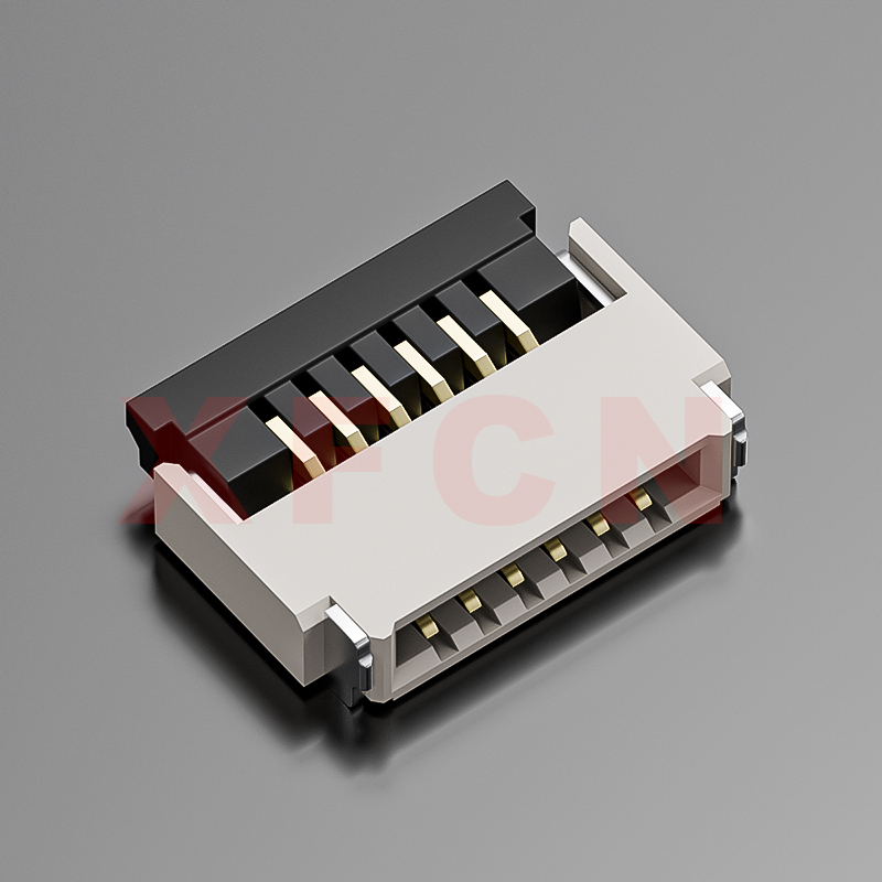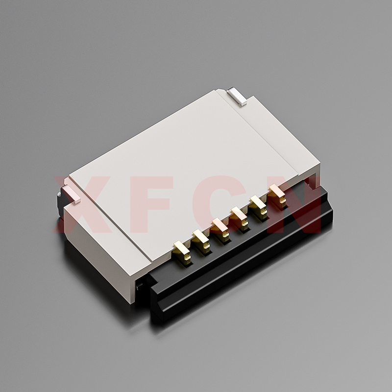 描述:FPC-0.5mm间距,前插后掀,06位,高度1.0mm, 镀金