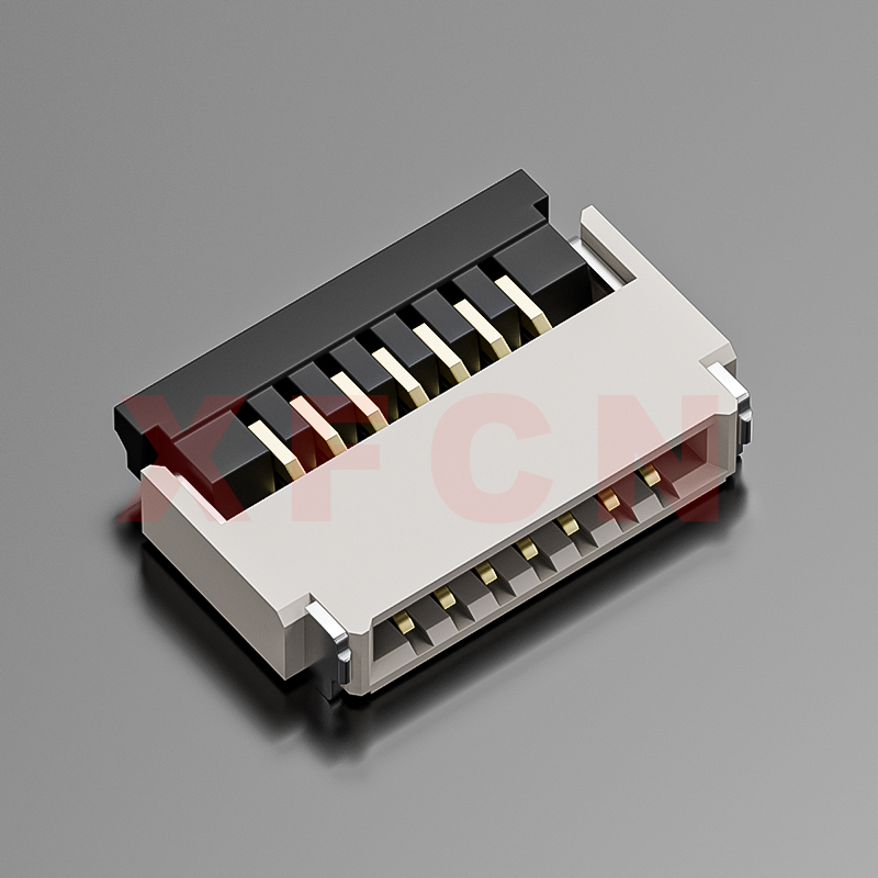 描述:FPC-0.5mm间距,前插后掀,07位,高度1.0mm, 镀金