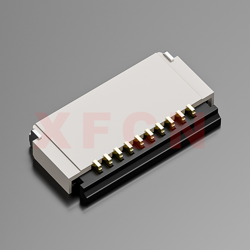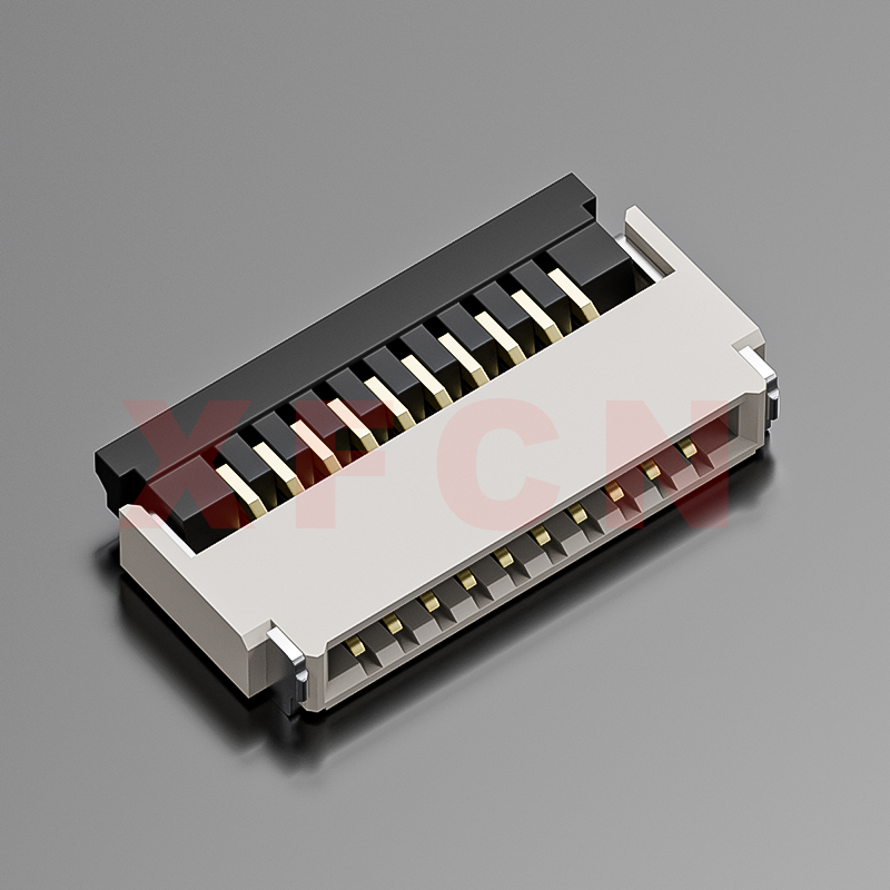 描述:FPC-0.5mm间距,前插后掀,10位,高度1.0mm, 镀金