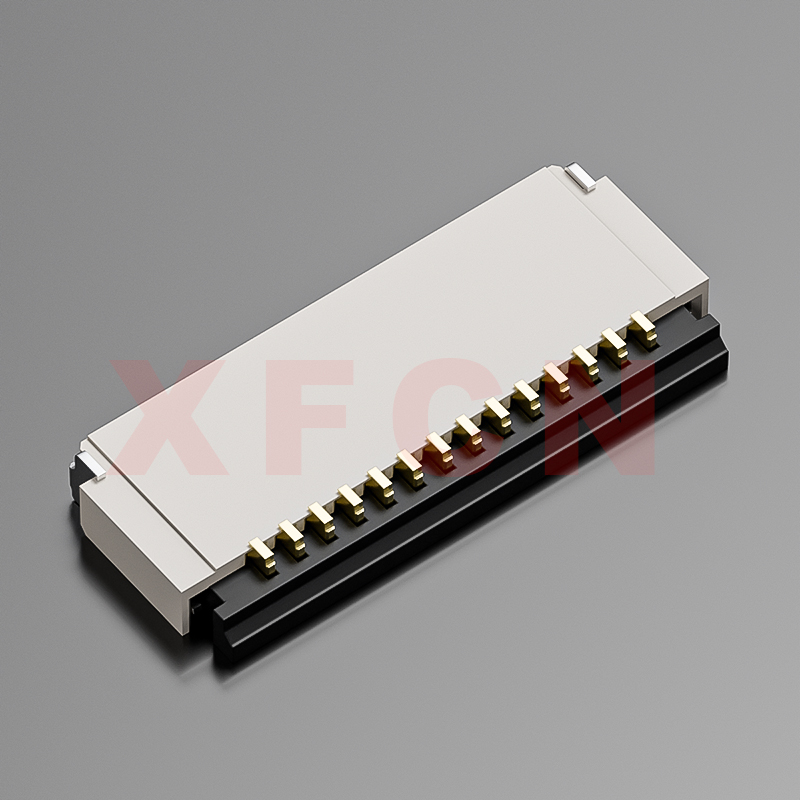 描述:FPC-0.5mm间距,前插后掀,10位,高度1.0mm, 镀金