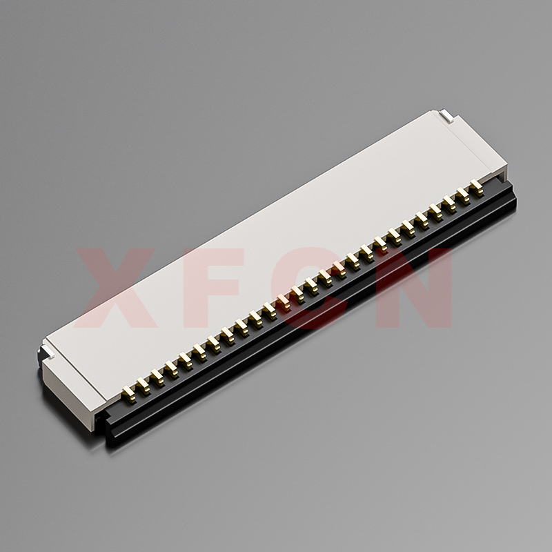 描述:FPC-0.5mm间距,前插后掀,26位,高度1.0mm, 镀金