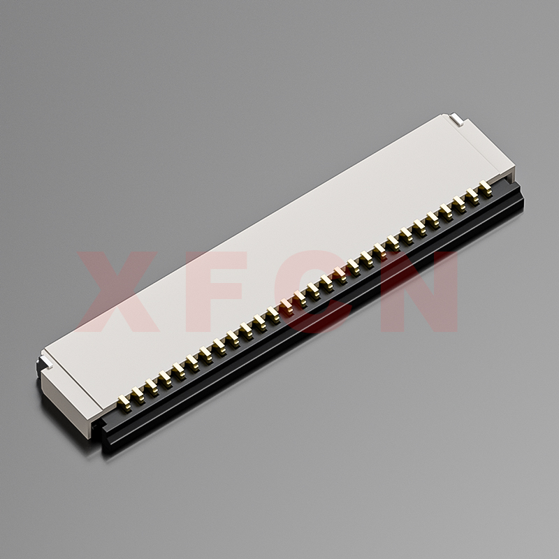 描述:FPC-0.5mm间距,前插后掀,28位,高度1.0mm, 镀金
