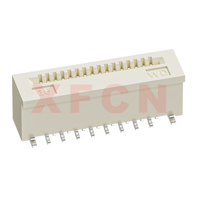 描述:FPC-0.5mm间距,无盖式,立贴正脚,16位,高度4.0mm,